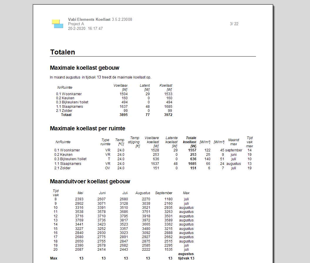 Met Vabi Elements Koellast bieden wij in een vroeg ontwerpstadium al snel een indicatie van de benodigde koelcapaciteit. Tijdens de dimensioneringsfase is detailniveau mogelijk tot het benodigde koelvermogen per uur en het tijdstip van optreden.